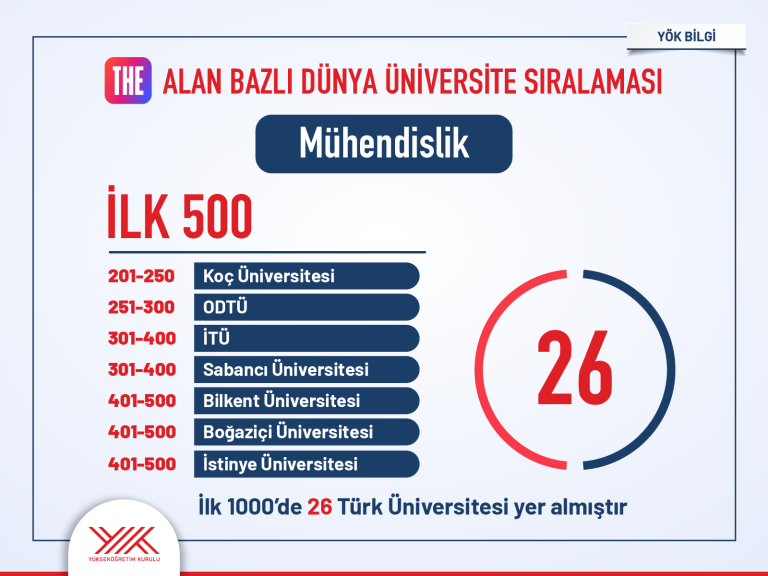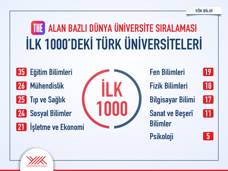 وكان تصنيفأ Times Higher Education (THE) لعام 2025 قد اصدر قائمة الترتيب الجديدة للجامعات عالميًا حسب المجالات الأكاديمية. وبرزت العديد من الجامعات التركية ضمن أفضل 1000 جامعة في عدة تخصصات، خاصةً في مجالي علوم التربية والهندسة، حيث أظهرت الجامعات التركية أداءً متميزًا.