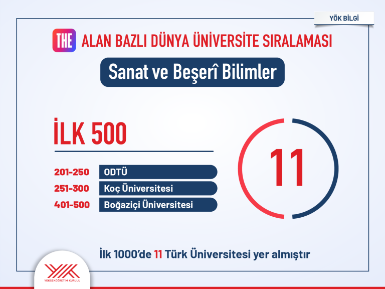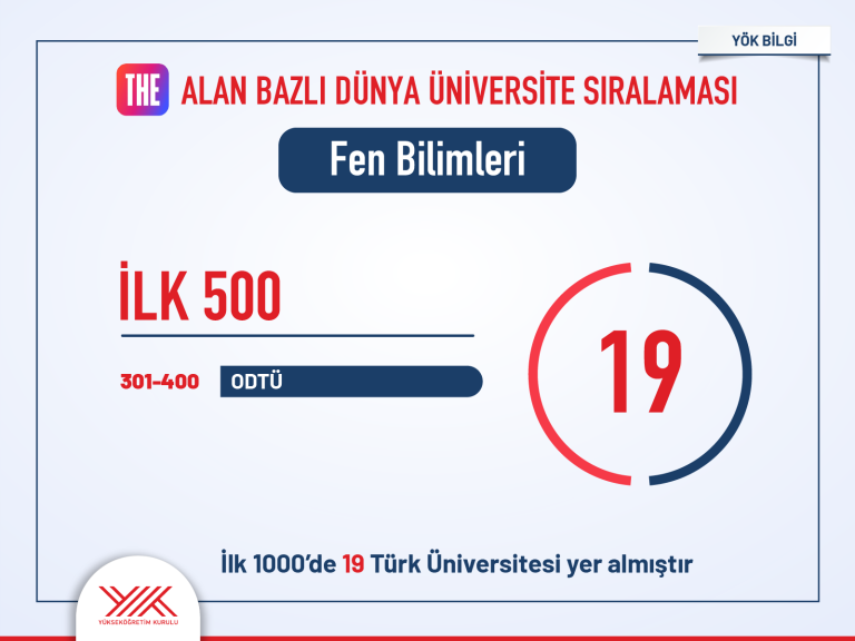 في تصنيف علوم التربية الصادر عن THE، احتلت جامعة الشرق الأوسط التقنية (ODTÜ) المرتبة 89 عالميًا، مما جعلها ضمن أفضل 100 جامعة في هذا المجال. كما شمل التصنيف 6 جامعات تركية ضمن أفضل 500 جامعة و35 جامعة ضمن أفضل 1000 جامعة على مستوى العالم.